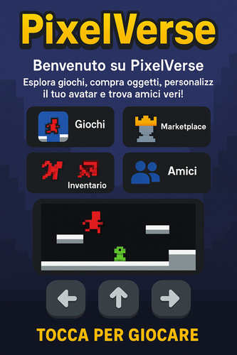 PixelVerse unisce semplicità e divertimento in un mondo retro-pixel per tutte le età. Preparati a saltare, combattere e costruire la tua identità digitale!