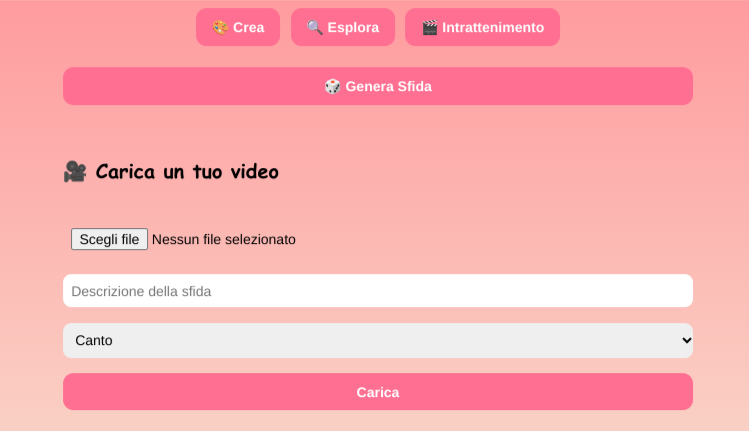 🎥 Caricamento video con categorie come canto, disegno, imitazione e altro